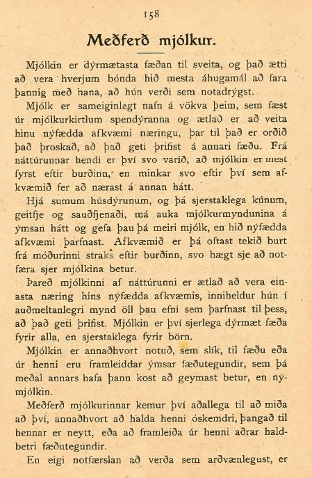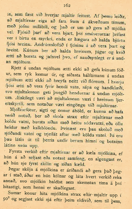 Í upphafi nýs árs birtum við til gamans pistil um Meðferð mjólkur sem skrifaður var í "Handbók fyrir bændur" sem gefin var út fyrir 100 árum síðan eða árið 1926. Trúlega var þetta fyrsta árið sem Handbók bænda var gefin út hér á landi. Útgefendur þessarar handbókar voru Pálmi Einarsson, Steingrímur Steinþórsson og Þórir Guðmundsson og bókin var prentuð í Prentsmiðjunni Acta hf. í Reykjavík. Undir pistilinn ritar höfundur upphafsstafi sína A.F. en því miður fylgir bókinni ekki höfundaskrá og því liggur ekki fyrir hver höfundur pistilsins er.