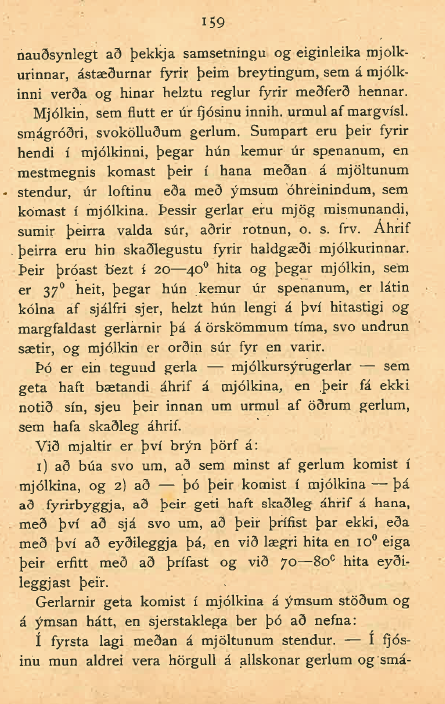 "Undirstaðan fyrir því að hafa góða mjólk, fá gott smjör, gott skyr og góða osta er sameiginleg fyrir þetta allt. Það er gott fóður, gott atlæti, góð hirðing, hreinlæti, bæði með skepnur, fjós og mjaltir og vandleg kæling, ef mjólkin á að geymast. Það verður ekki hægt að framleiða góðar mjólkurafurðir, ef ábótavant er í einhverju þessu."