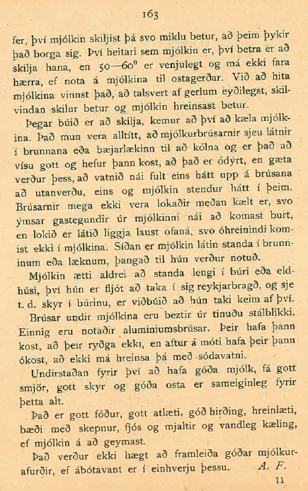 Þó 100 ár séu liðin frá því að þessi texti var birtur er gaman og fróðlegt að sjá að menn voru þarna búnir að átta sig á því hvað hreinlæti við mjaltir og kæling mjólkurinnar skiptir gríðarlega miklu máli, eitthvað sem svo sannarlega á enn við í dag. Í raun er niðurlag greinarinnar ennþá í fullu gildi þessum 100 árum síðar - og verður væntanlega alla tíð: