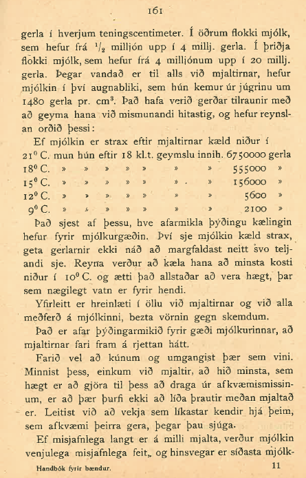 Í upphafi nýs árs birtum við til gamans pistil um Meðferð mjólkur sem skrifaður var í "Handbók fyrir bændur" sem gefin var út fyrir 100 árum síðan eða árið 1926. Trúlega var þetta fyrsta árið sem Handbók bænda var gefin út hér á landi. Útgefendur þessarar handbókar voru Pálmi Einarsson, Steingrímur Steinþórsson og Þórir Guðmundsson og bókin var prentuð í Prentsmiðjunni Acta hf. í Reykjavík. Undir pistilinn ritar höfundur upphafsstafi sína A.F. en því miður fylgir bókinni ekki höfundaskrá og því liggur ekki fyrir hver höfundur pistilsins er.